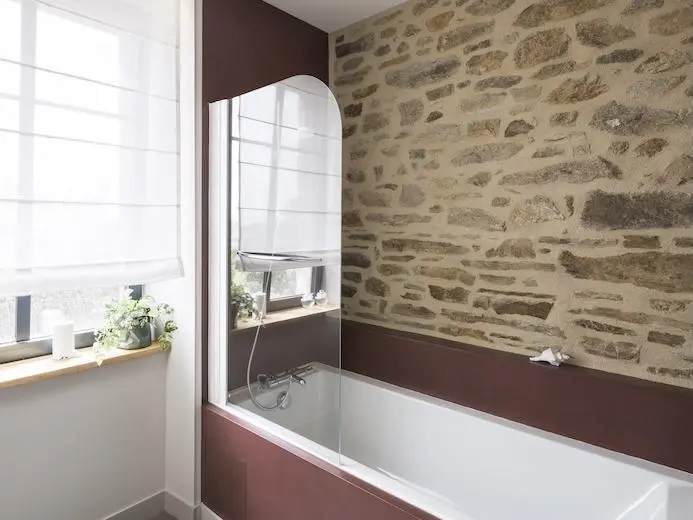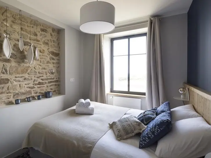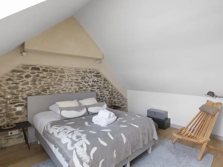 This modern and charming holiday home, built of old natural stone, is quietly situated 850 m from the beach on the Bay of Cancale, not far from the beautiful Emerald Coast of Brittany, Saint-Malo and Mont Saint-Michel. The house features cozy and elegant spaces and is equipped with a Jacuzzi on the terrace, which is available all year round.