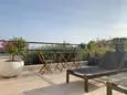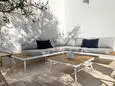 Terrace with garden furniture, gas barbecue, 6 sun loungers and 2 parasols. Living room with sitting area, TV, DVD and air conditioning. Fitted kitchen with single sink, American fridge with freezer compartment, gas stove, oven, extractor hood, microwave, dishwasher, Nespresso and mixer. Separate storage room with washing machine, vacuum cleaner, ironing board and iron.