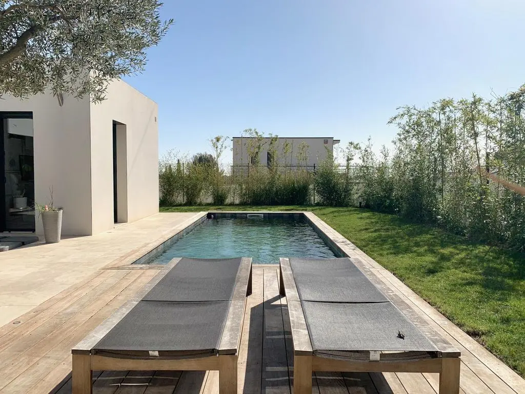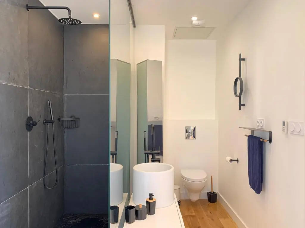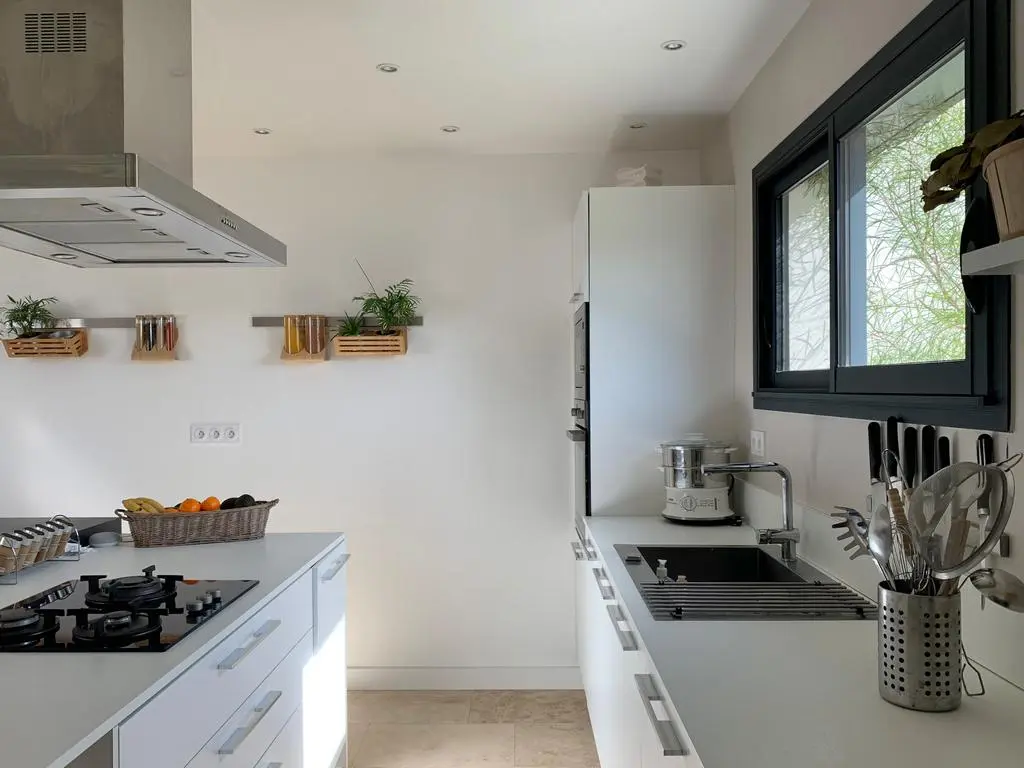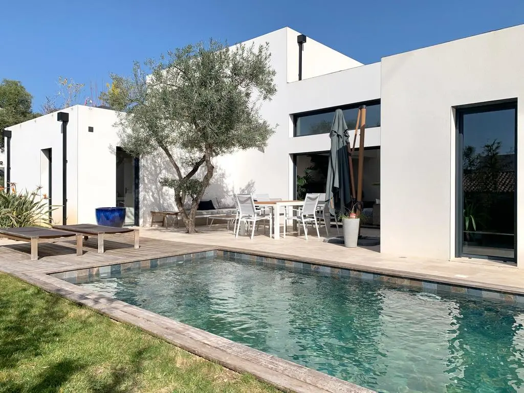 This luxurious new-build villa is located in a residential area in a closed domain, 4 km from the center of La Ciotat. In this seaside resort you can enjoy the beach & sea, fun water activities and many restaurants and terraces. At the house, you can enjoy the sunny terrace or the refreshing private swimming pool. Every room in the house has air conditioning and every room has its own bathroom.