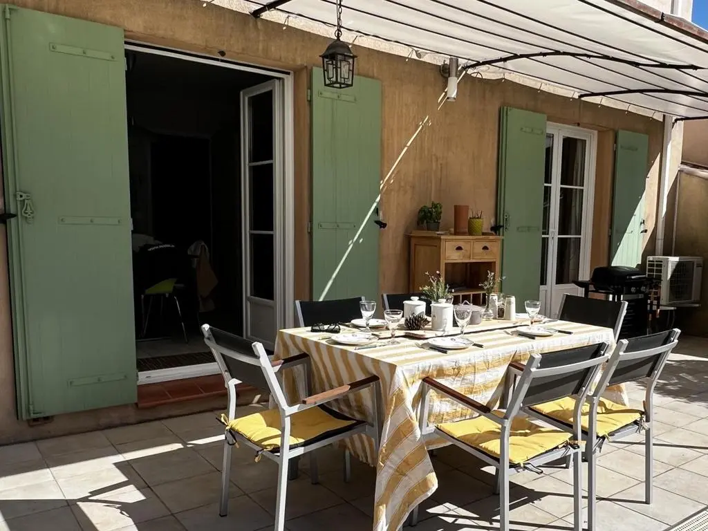 Terrace and covered terrace with garden furniture, electric barbecue, 3 sun loungers and 2 parasols. Living room with sitting area, air conditioning, TV with Chromecast. Fitted kitchen with double sink, large fridge with separate freezer, electric hobs, oven, extractor hood, dishwasher, microwave, Nespresso and mixer. Wine refrigerator, washing machine, drying rack, vacuum cleaner, iron and ironing board in the garage.