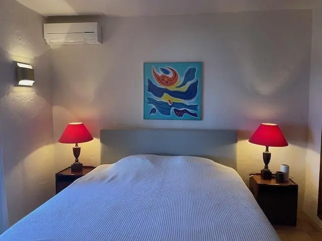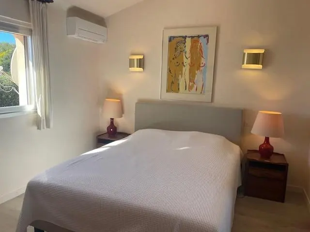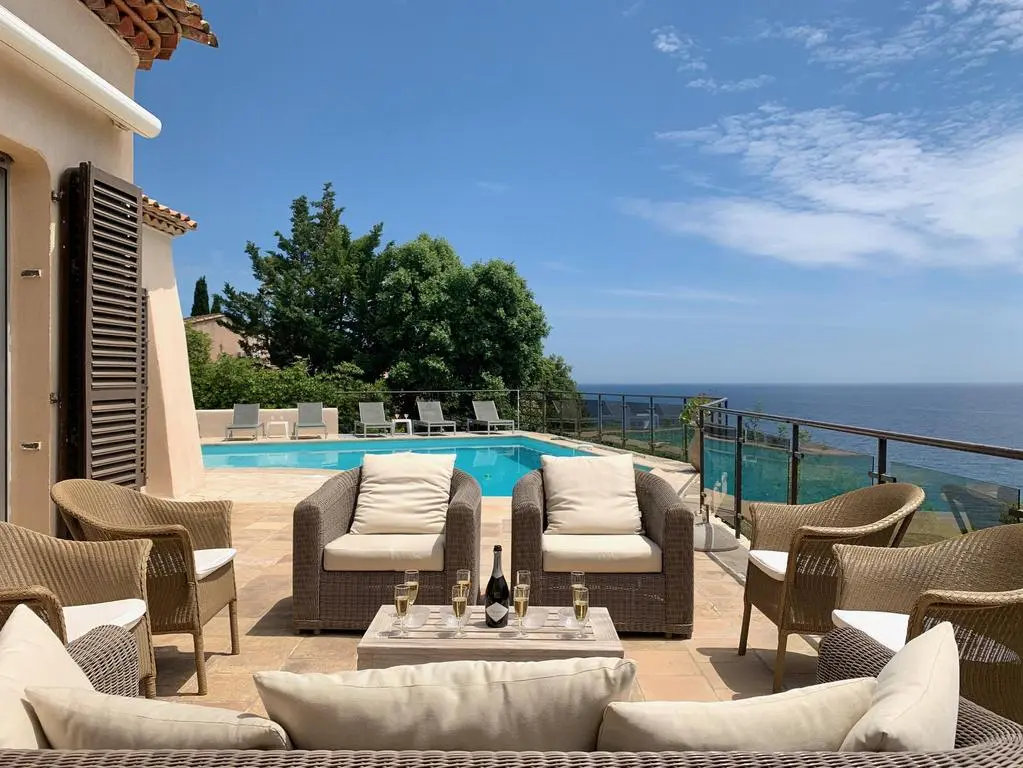 This cozy holiday villa with an exceptional panoramic sea view from the terrace and from the heated swimming pool, is located in a private domain within walking distance of the beach la Plage des Eléphants. The house consists of 4 bedrooms for 8 people.