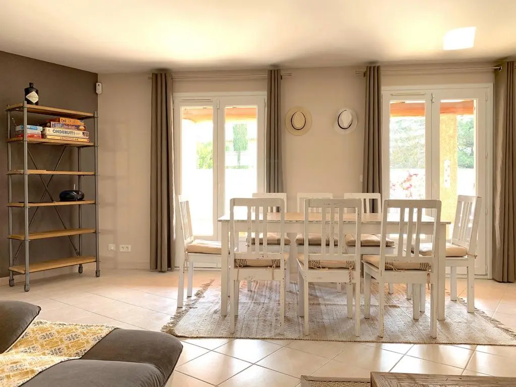 Maison Cisou is a modern single-storey house, residentially located in the Saint-Antoine quartier on the edge of the town of L'Isle-sur-la-Sorgue, known for its weekly flea market on Sundays and its many antique shops, restaurants and the river Sorgue that makes the town the Venice of Provence. Relax at the beautiful swimming pool with covered terrace, enjoy water fun on the river Sorgue or go visit the many typical southern French villages with their Provencal markets.