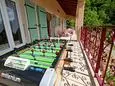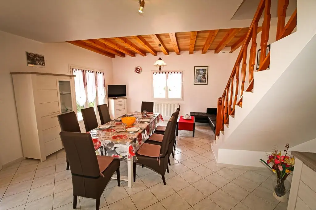 Covered terrace (50m²) with garden furniture, 8 sun loungers and barbecue with work surface and sink. Large living room with satellite TV, sofa and telephone (reception only). Equipped kitchen area with large fridge-freezer, large freezer, gas stove, electric oven, extractor hood, microwave, dishwasher, coffee maker, Senseo, iron, mixer, kitchen robot, high chair and toilet seat. Washing machine.