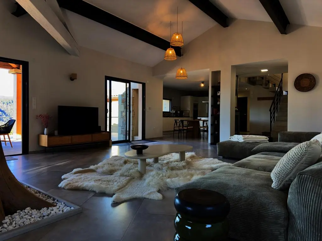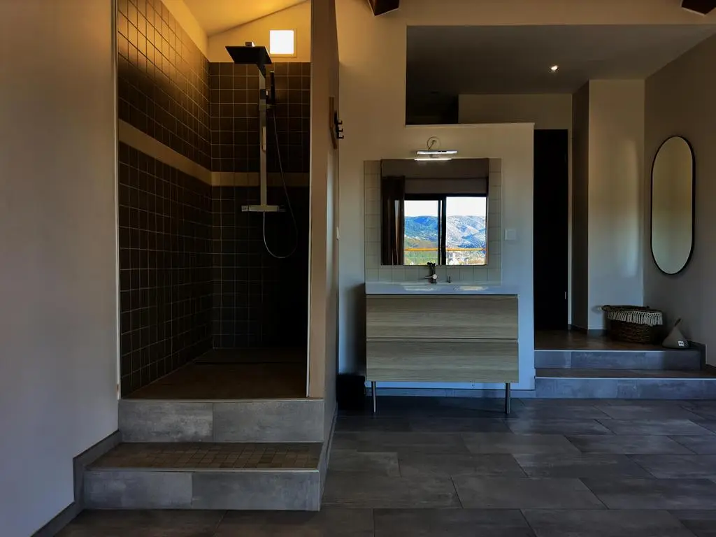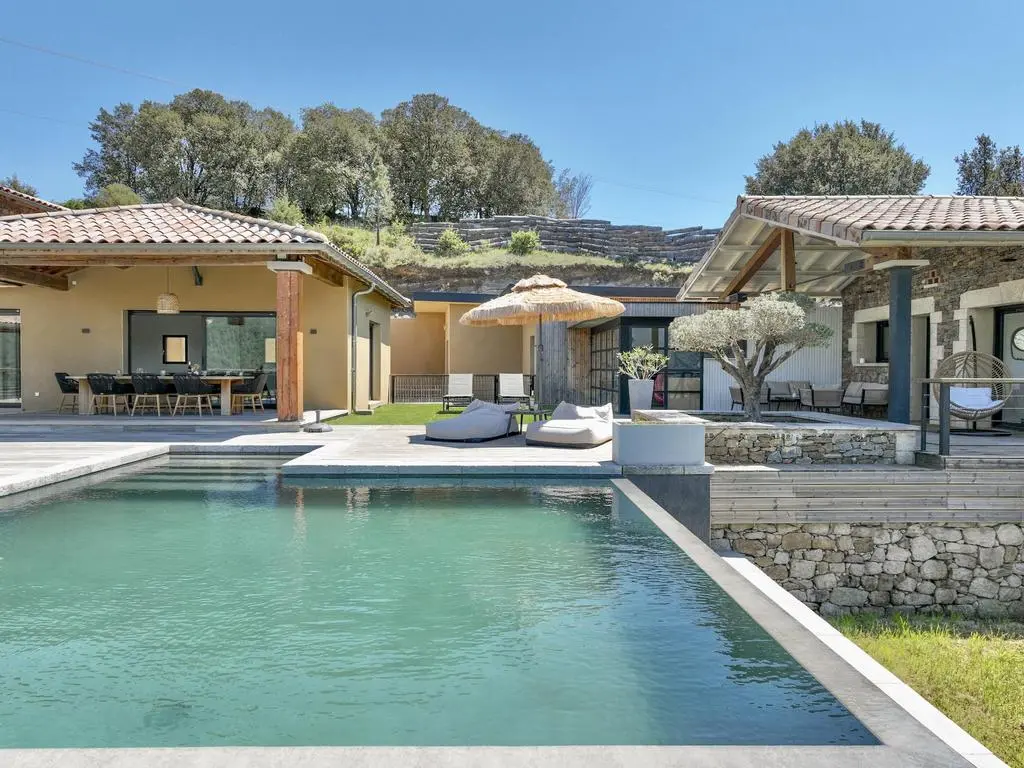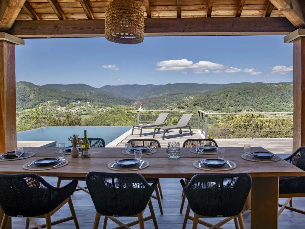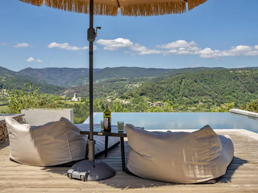 This modern new-build villa with infinity pool and beautiful views of the Vallée du Chassezac is quietly located in nature and yet not far from the lively center of Les Vans with quality restaurants, cozy terraces and beautiful shops. The main house has 4 bedrooms for 6 people and 2 children and the separate gîte has 1 bedroom for 2 people.