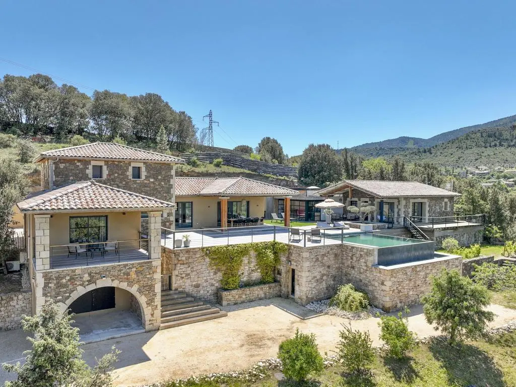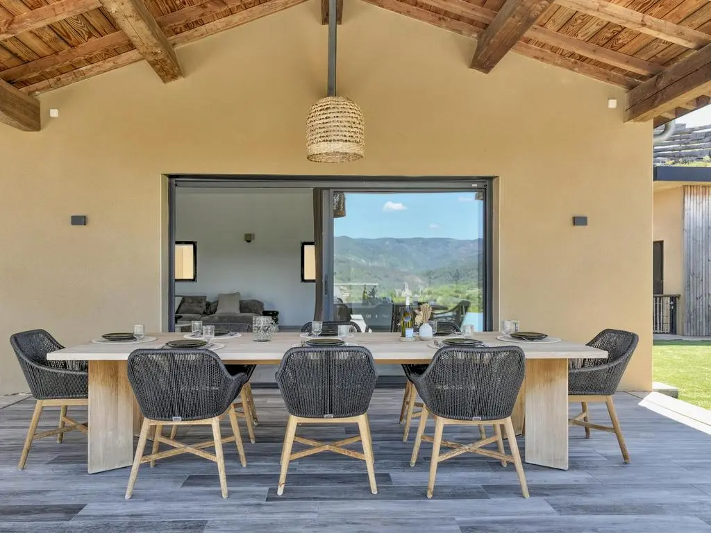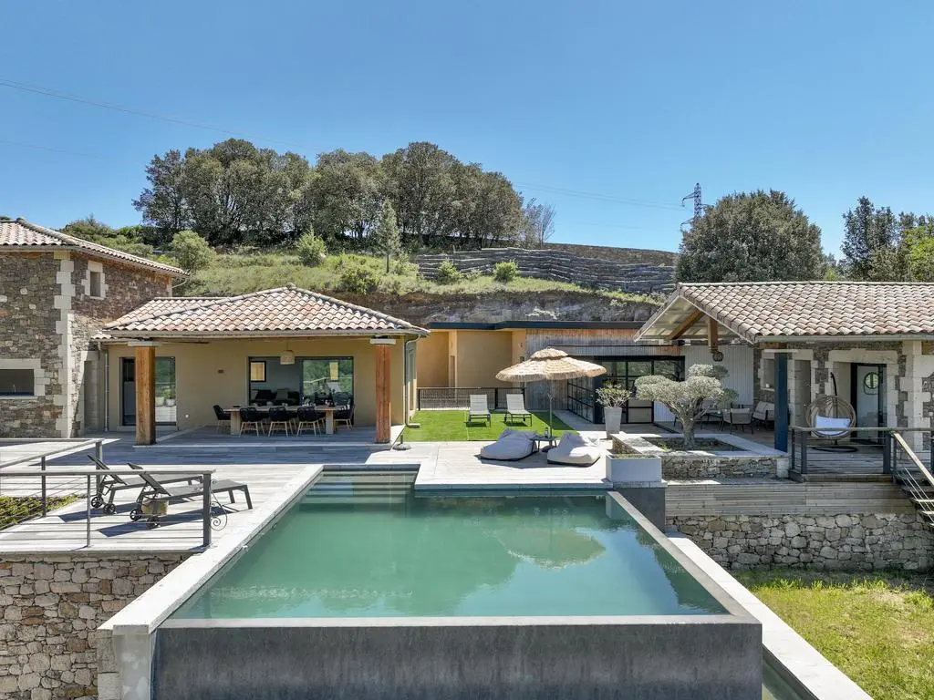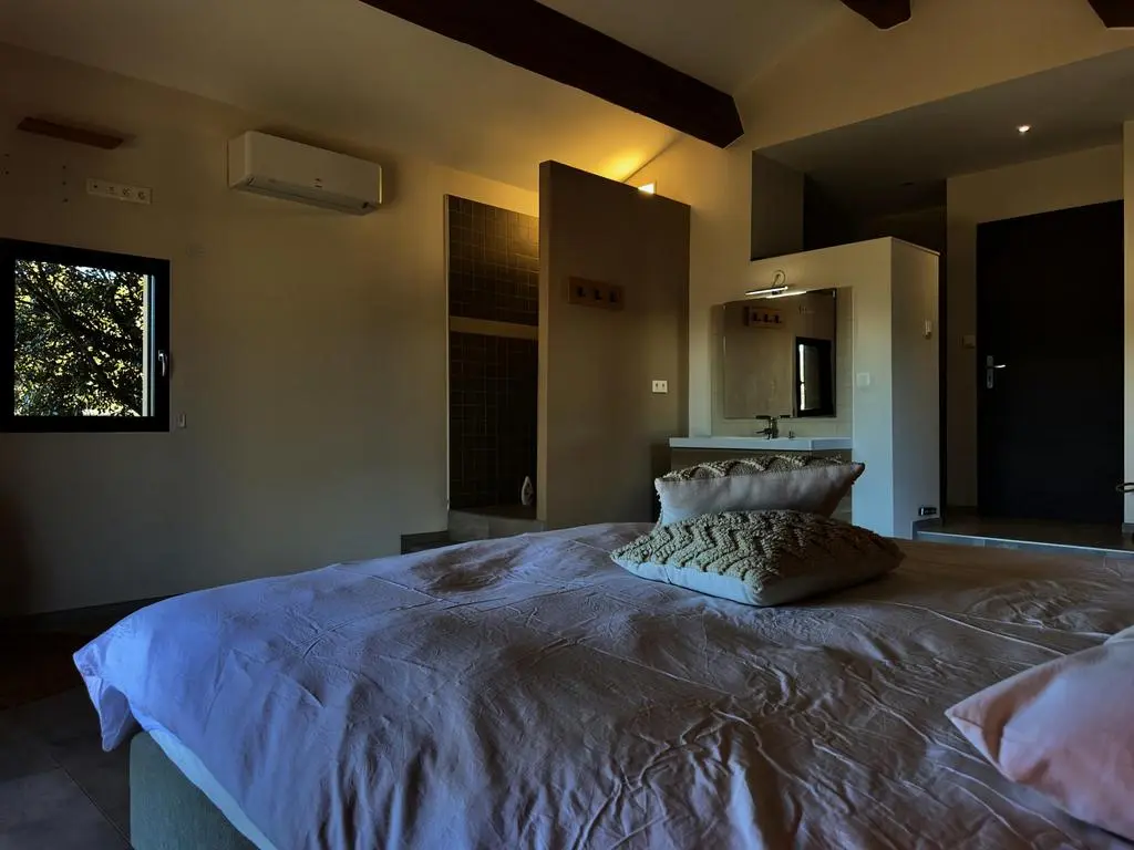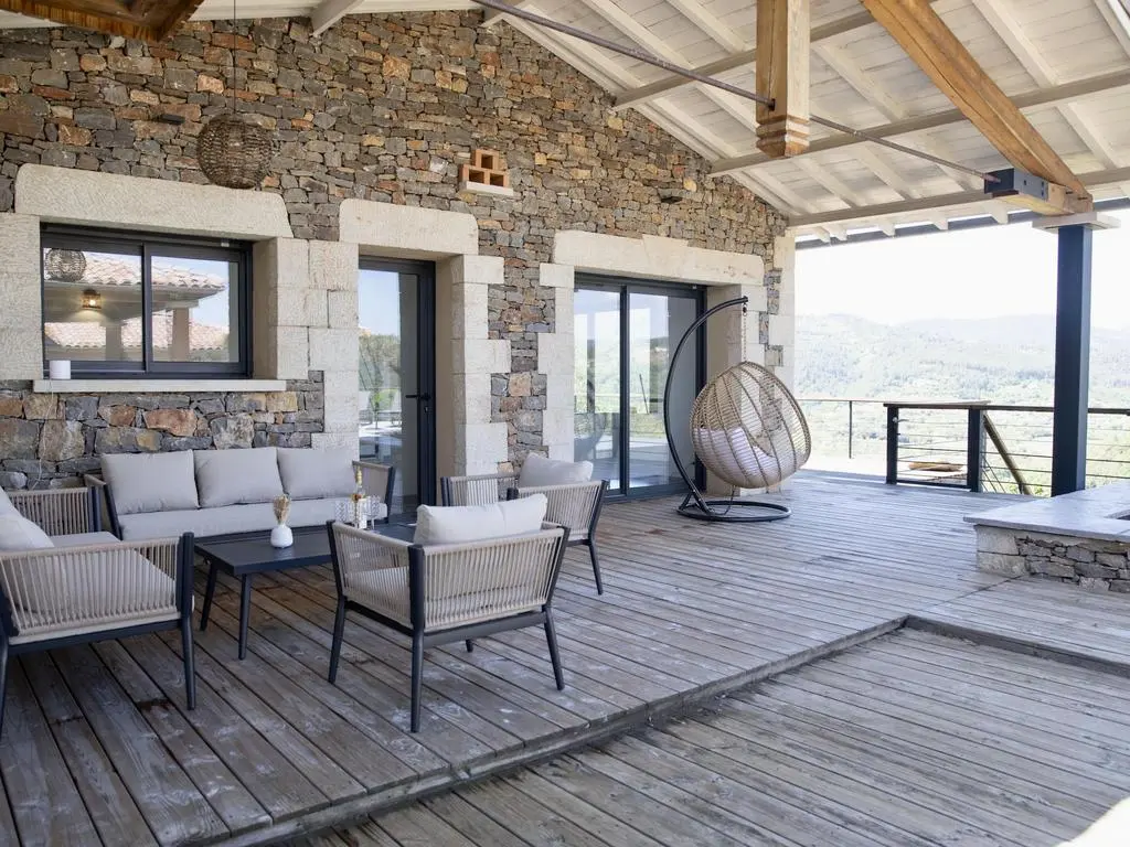 This modern new-build villa with infinity pool and beautiful views of the Vallée du Chassezac is quietly located in nature and yet not far from the lively center of Les Vans with quality restaurants, cozy terraces and beautiful shops. The main house has 4 bedrooms for 6 people and 2 children and the separate gîte has 1 bedroom for 2 people.
