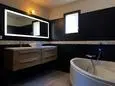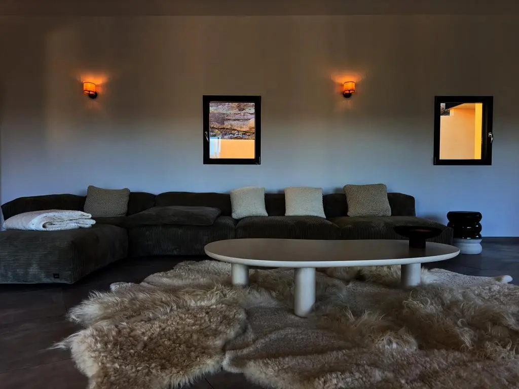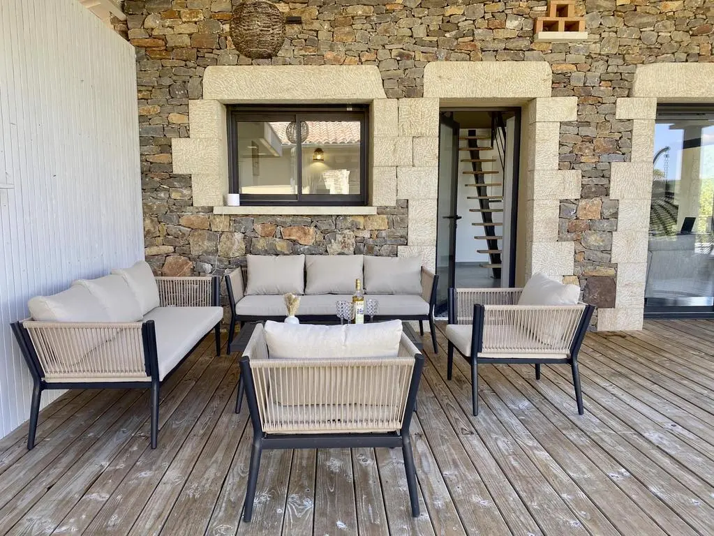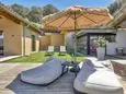 Terrace and covered terrace with garden furniture, gas barbecue, sun loungers and parasols. Living room with sitting area, reversible underfloor heating, smart TV and Bluetooth box. Fitted kitchen with single sink, American fridge with separate freezer, induction hobs, extractor hood, oven, microwave, dishwasher, Nespresso, coffee machine and mixer. Separate storage room with washing machine, vacuum cleaner, ironing board and iron.