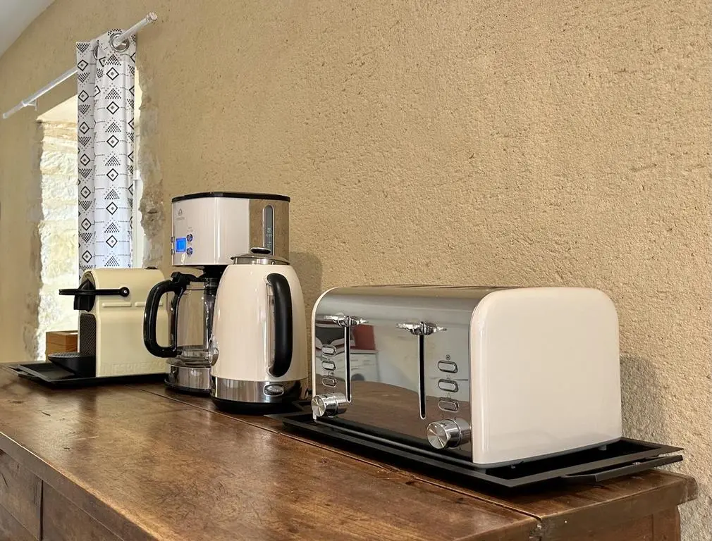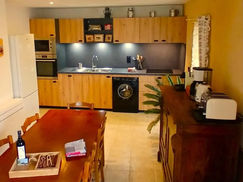 Plusieurs terrasses avec mobilier de jardin, barbecue à charbon, plancha à gaz, 6 transats et 2 parasols. Séjour avec coin salon, clim, TV satellite, DVD et poêle à bois. Cuisine équipée avec évier double, grand réfrigérateur avec congélateur séparé, plaques à induction, hotte, four, four à micro-ondes, lave-vaisselle, Nespresso, cafetière électrique, lave-linge, aspirateur, planche et fer à repasser.