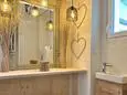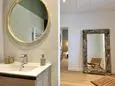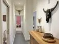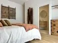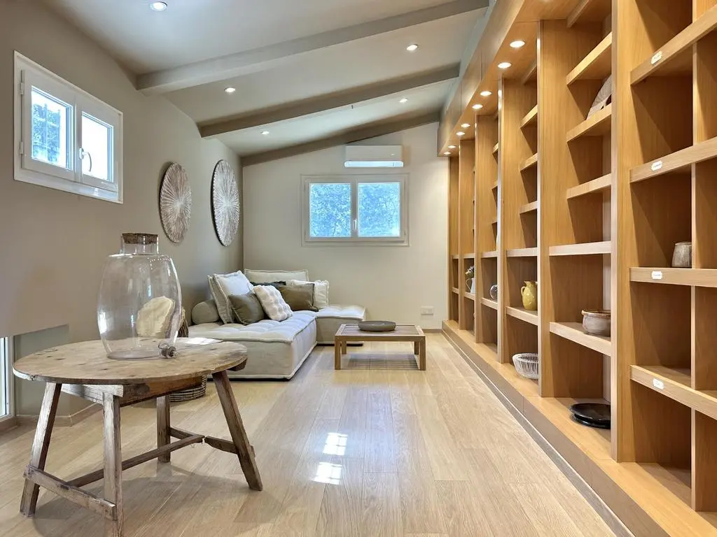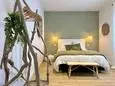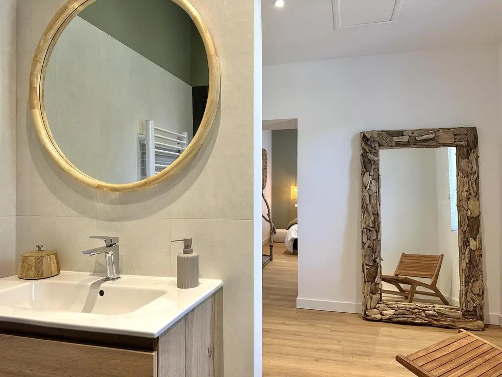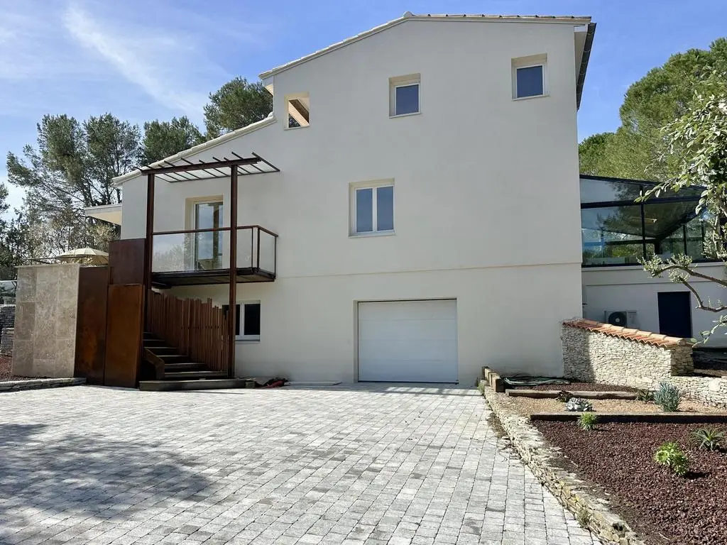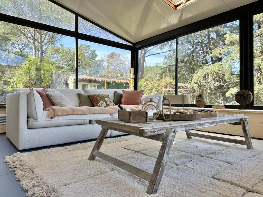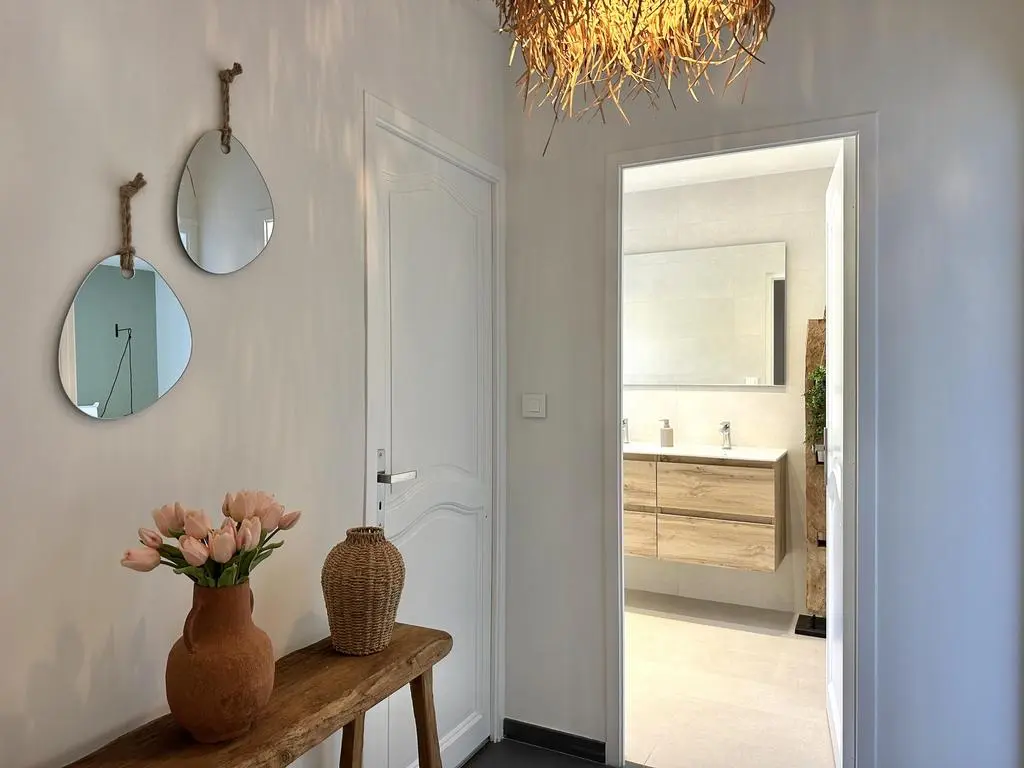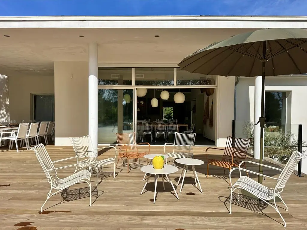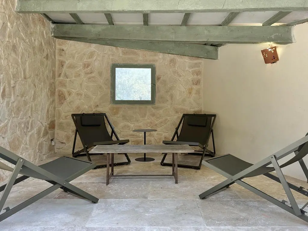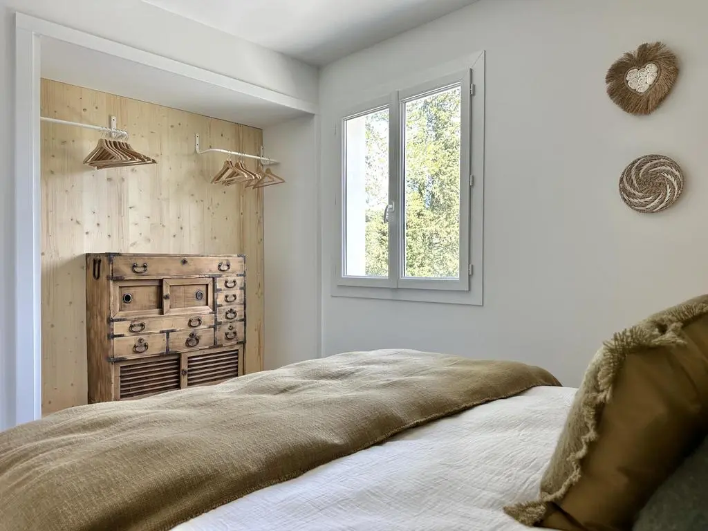 Terrasse et terrasse couverte avec mobilier de jardin, plancha électrique, 10 transats et 5 parasols. Séjour avec coin salon, clim, TV flatscreen et poêle à bois. Mezzanine avec coin salon. Cuisine équipée avec évier simple, réfrigérateur américain avec congélateur, grand réfrigérateur supplémentaire, plaques à induction, hotte, four, four à micro-ondes, lave-vaisselle, Nespresso et mixer. Buanderie avec lave-linge, sèche-linge, étendoir, aspirateur, planche et fer à repasser.