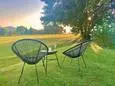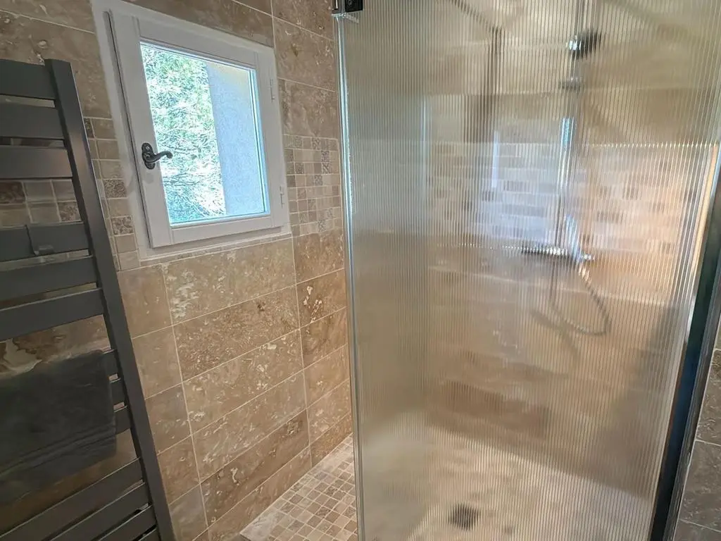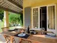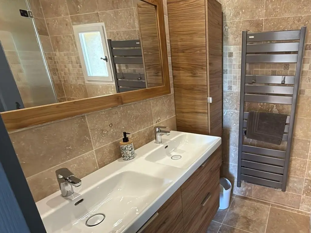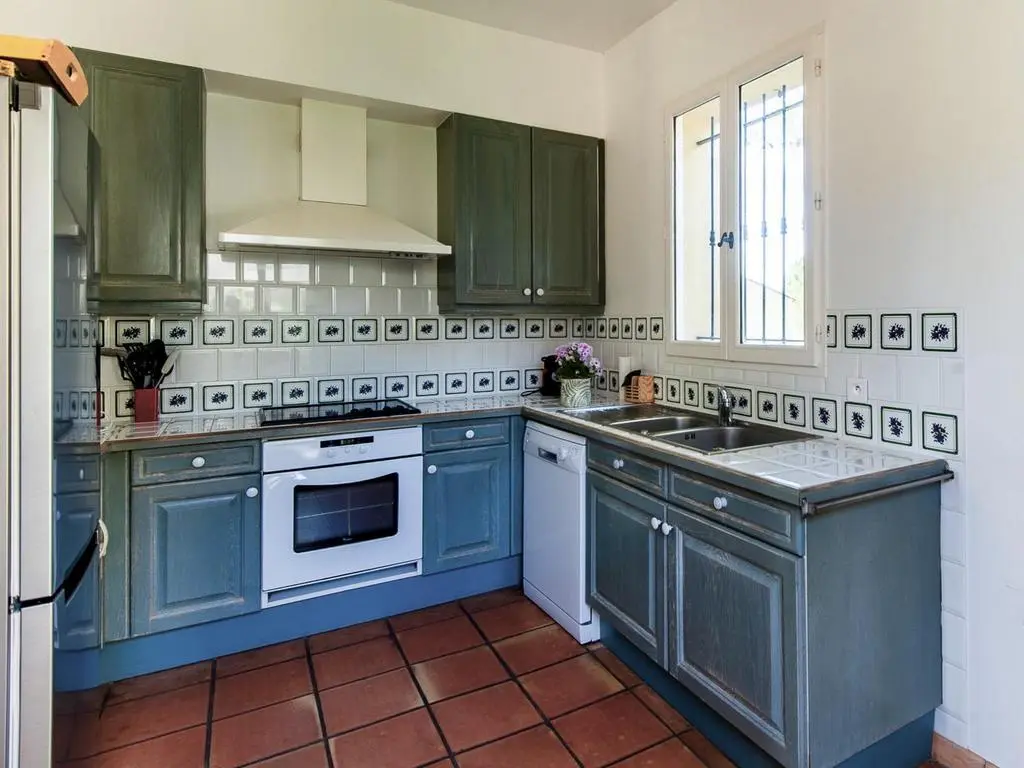 Terrasse et terrasse couverte avec mobilier de jardin, barbecue à gaz, plancha électrique et 6 transats. Séjour avec coin salon, clim, smart TV et feu ouvert. Cuisine équipée avec évier double, grand réfrigérateur avec compartiment congélateur, réfrigérateur supplémentaire avec compartiment congélateur, plaques électriques, hotte, four, four à micro-ondes, lave-vaisselle, Nespresso, cafetière italienne et mixer. Buanderie avec lave-linge, sèche-linge, étendoir, aspirateur, planche et fer à repasser.
