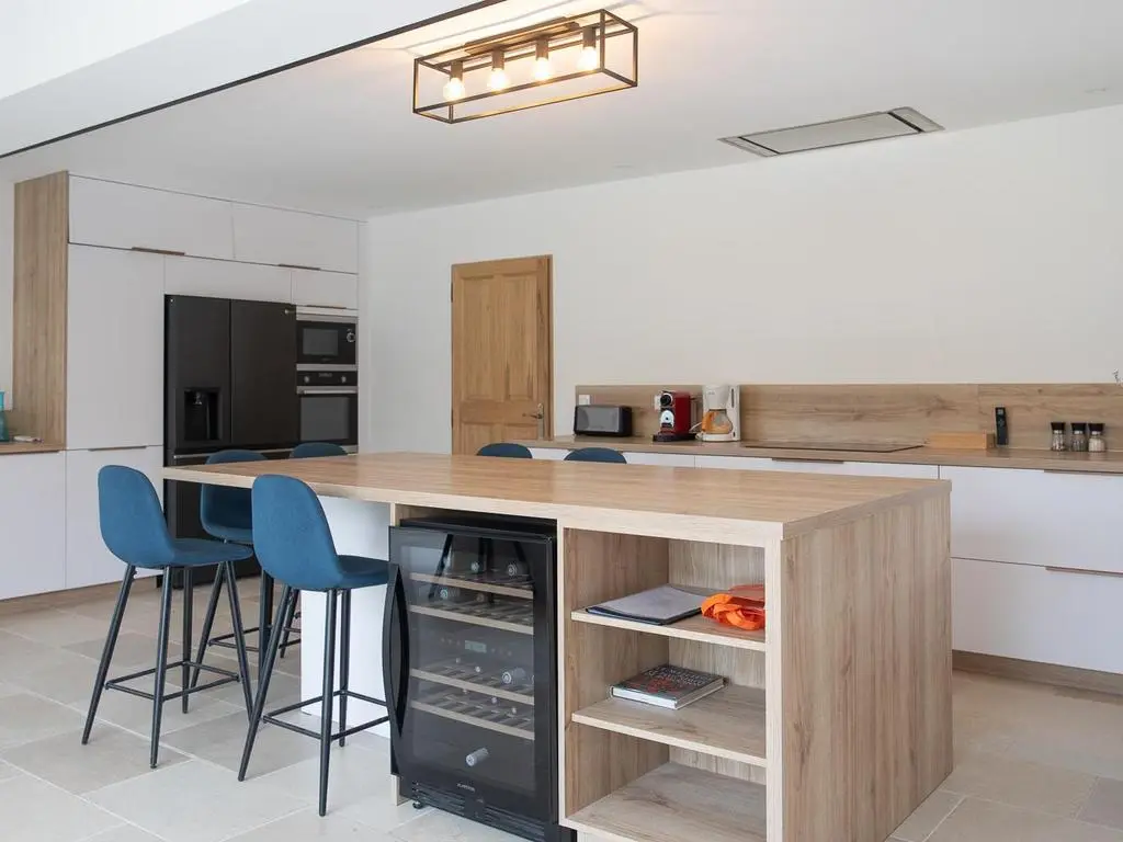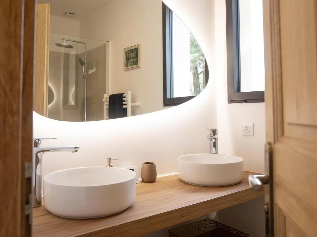 Terrasse et terrasse couverte avec mobilier de jardin, barbecue à gaz, plancha, 6 transats et 2 parasols. Séjour avec coin salon, canapé-lit, clim, TV, box Bluetooth, home cinema et poêle à bois. Cuisine équipée avec évier double, réfrigérateur américain, congélateur séparé, plaques à induction, hotte, four, four à micro-ondes, lave-vaisselle, Nespresso,cafetière électrique et mixer. Buanderie avec lave-linge, sèche-linge, aspirateur, planche et fer à repasser.