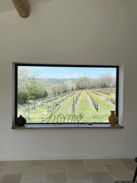 Dans une oasis de paix, en pleine nature, vous trouverez cette maison de vacances de plain-pied au milieu des vignes avec une vue magnifique sur Gordes et le Mont Ventoux.