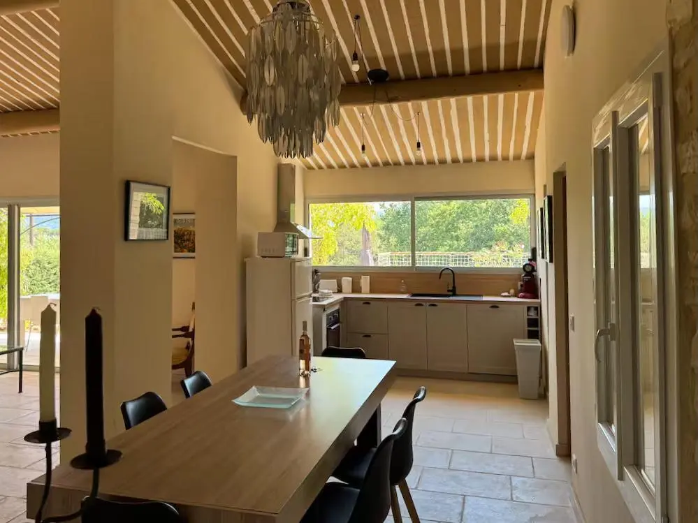 Perchée sur une colline offrant une vue imprenable sur le Luberon et entourée de nature, cette villa moderne et climatisée se trouve à quelques kilomètres seulement du charmant village de Roussillon. Évadez-vous du quotidien et plongez dans cette oasis de tranquillité !
