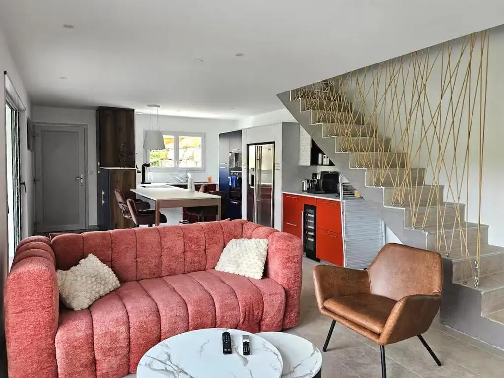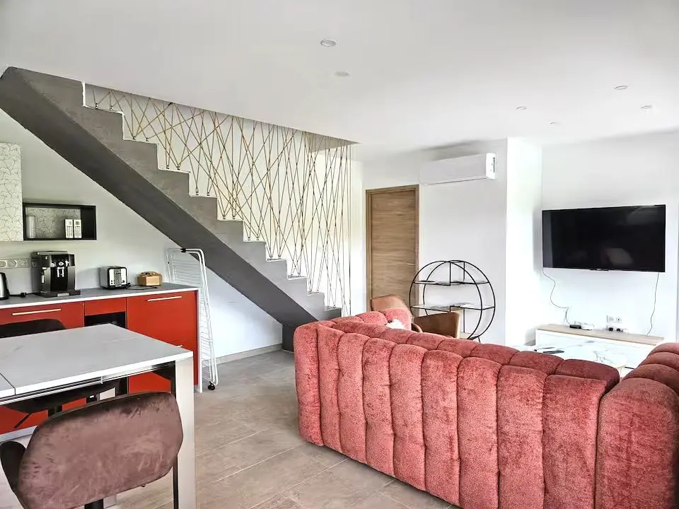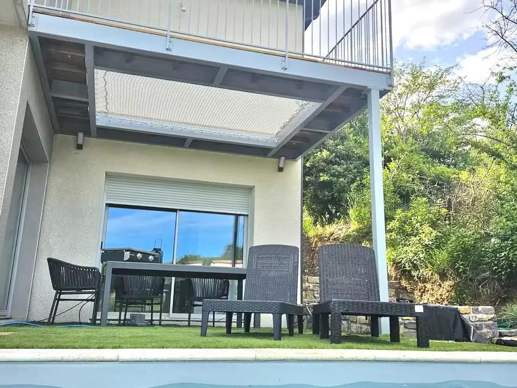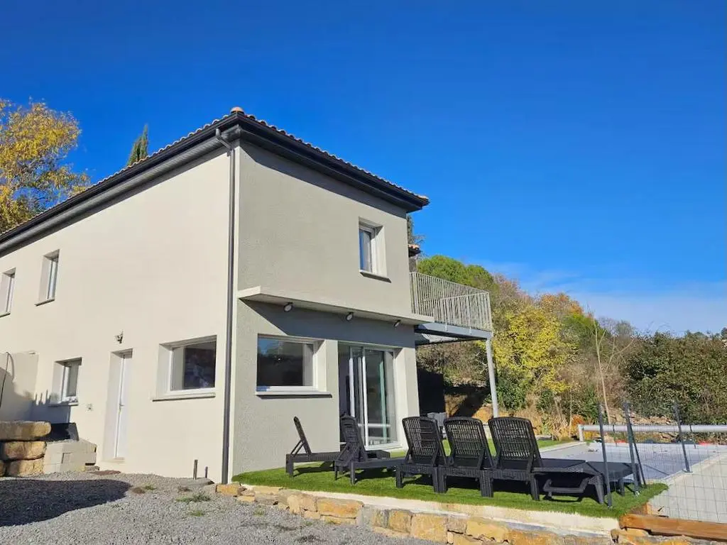 **NOUVEAU DANS NOTRE OFFRE** Cette maison neuve récente et magnifiquement meublée (2025) est située dans un quartier résidentiel calme à seulement 3 km de la ville d'Aubenas, dans le sud de l'Ardèche.