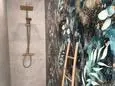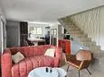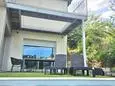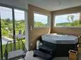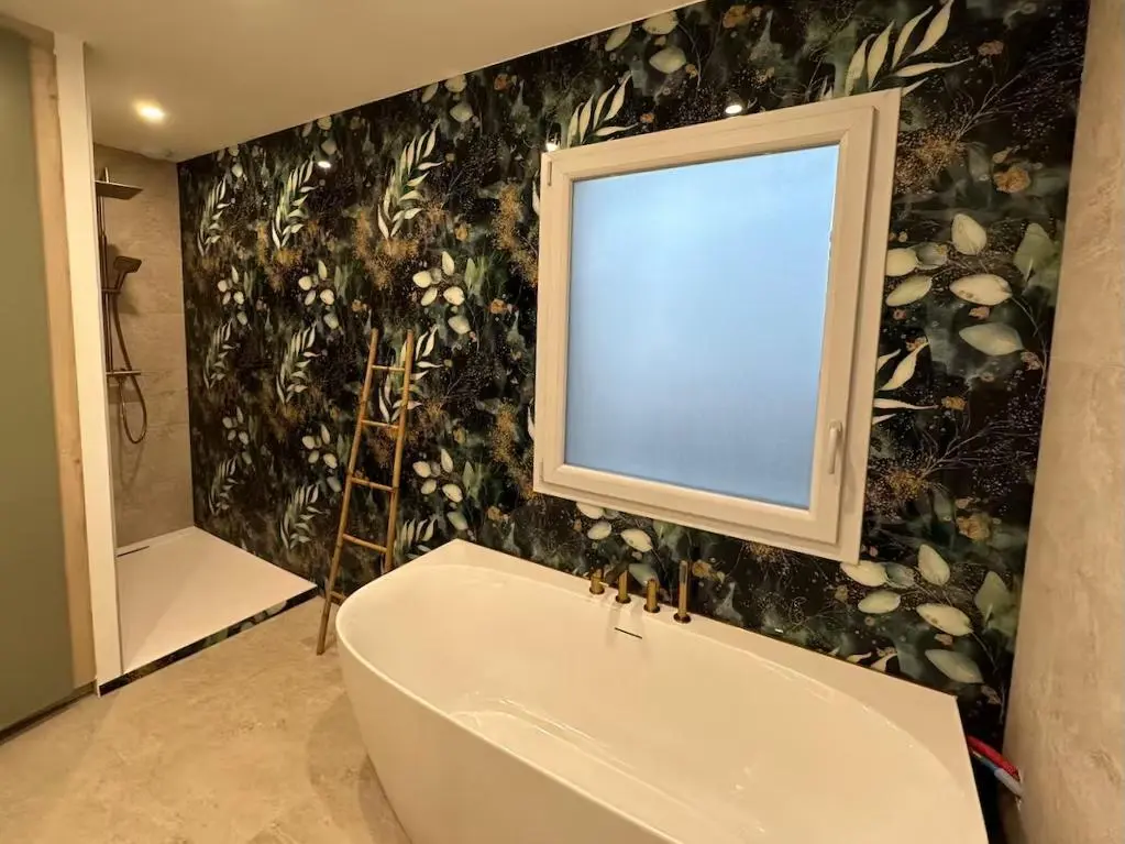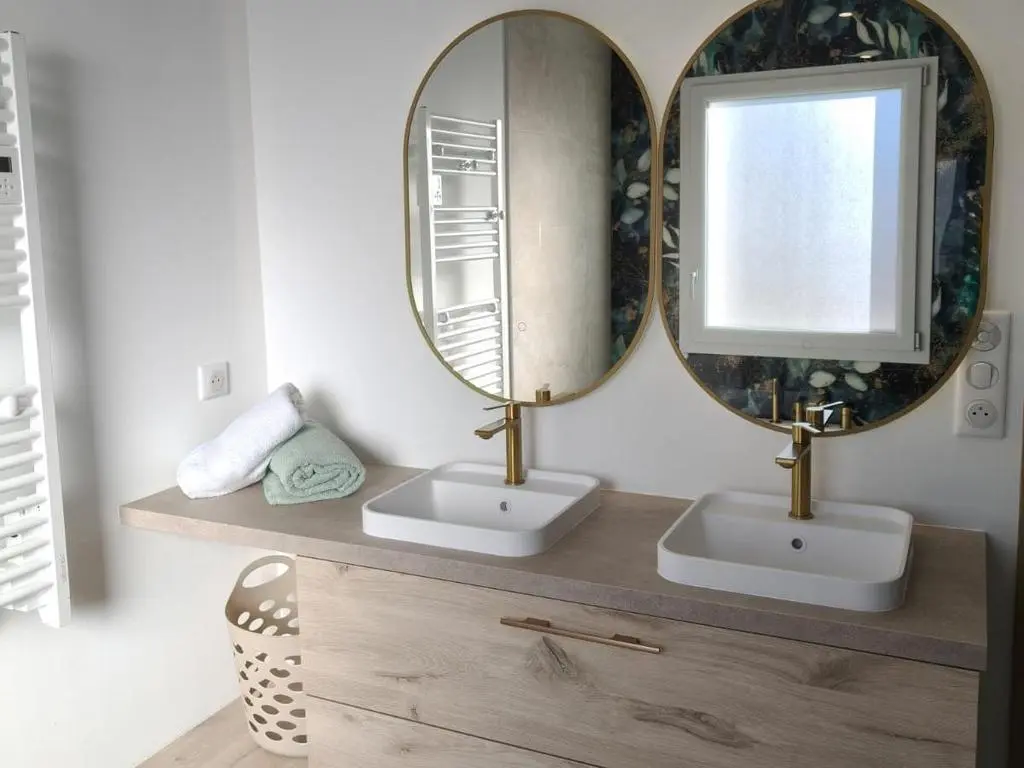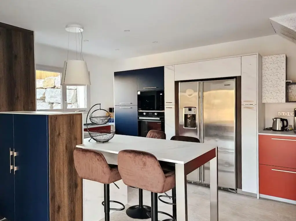 Terrasse et terrasse couverte avec mobilier de jardin, plancha à gaz, plancha électrique, 6 transats et 2 parasols. Séjour avec coin salon, clim, smart TV et box Bluetooth. Cuisine équipée avec évier simple, réfrigérateur américain avec congélateur, plaques à induction, hotte, four, four à micro-ondes, lave-vaisselle, machine espresso avec grains, cafetière électrique et mixer. Buanderie avec lave-linge, étendoir, aspirateur, planche et fer à repasser.