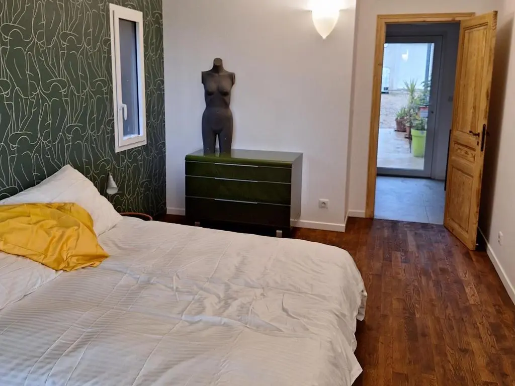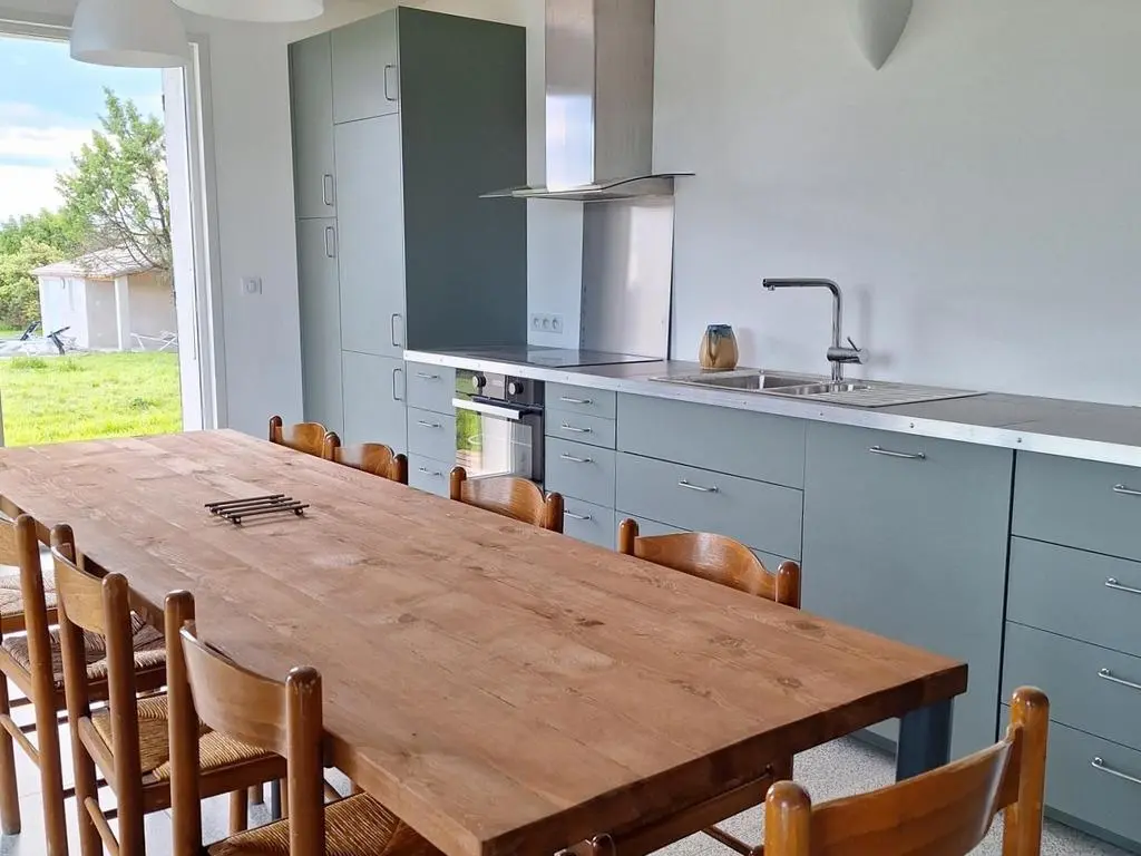 Terrasse et terrasse couverte avec mobilier de jardin et auvent, barbecue à charbon, 5 transats, hamac et un parasol. Séjour avec coin salon, clim, smart TV, DVD et poêle à bois. Cuisine équipée avec évier double, grand réfrigérateur avec compartiment congélateur, plaques à induction, hotte, four, four à micro-ondes, lave-vaisselle, Nespresso, cafetière électrique et mixer. Buanderie avec lave-linge, étendoir, aspirateur, planche et fer à repasser.
