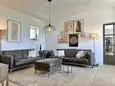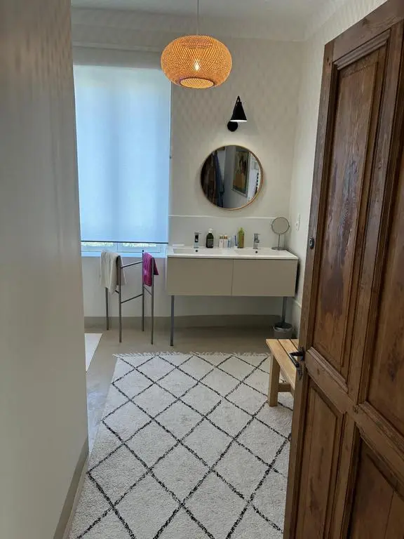 Terras en overdekt terras met tuinmeubels, barbecue op houtskool en barbecue op gas, 8 ligzetels en 3 parasols. Living op het verdiep met zithoek, airco, smart TV met alle Vlaamse kanalen, blu ray DVD, Bluetooth box en open haard. Ingerichte keuken op het verdiep met dubbele spoelbak, grote koelkast met aparte diepvries, inductie kookplaten, dampkap, oven, microgolfoven, vaatwasmachine, Nespresso, Nescafe Dolce Gusto, koffiezet en mixer. Aparte berging op het gelijkvloers met wasmachine, droogkast, stofzuiger, strijkplank en strijkijzer.