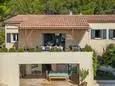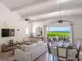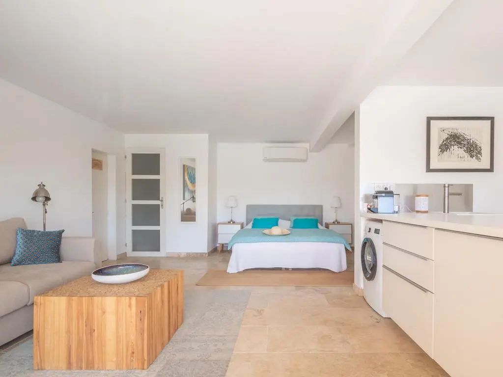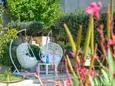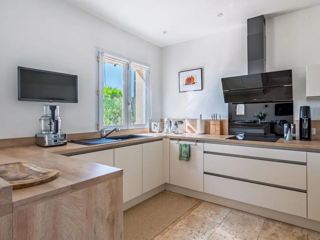 Terras en overdekt terras met tuinmeubels, barbecue op gas, 5 ligzetels, 2 hangstoelen en 2 parasols. Living met zithoek, airco en smart TV. Ingerichte open keuken met dubbele spoelbak, grote koelkast met vriesvak, elektrische kookplaten, dampkap, oven, microgolfoven, vaatwasmachine, Nespresso en mixer. Aparte berging met wasmachine, droogrek, stofzuiger, strijkplank en strijkijzer.