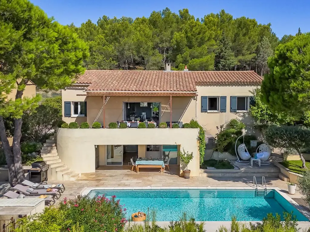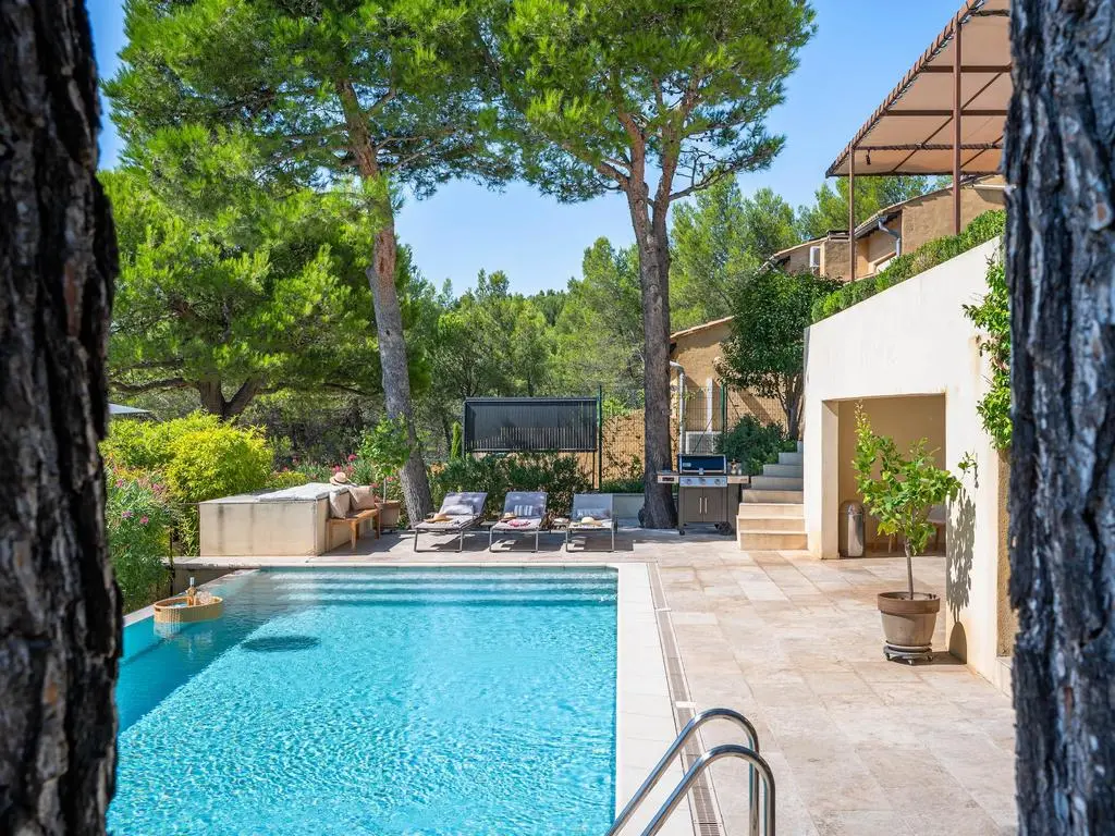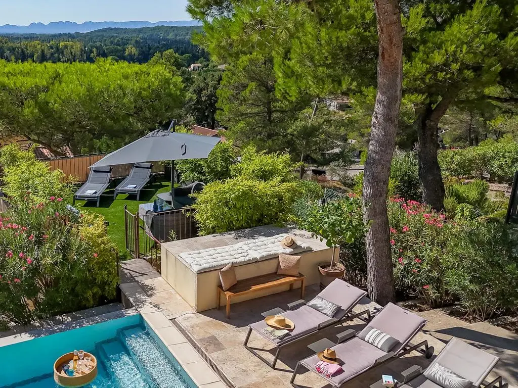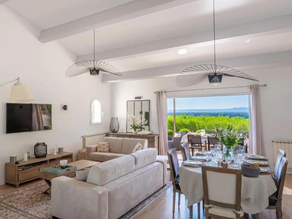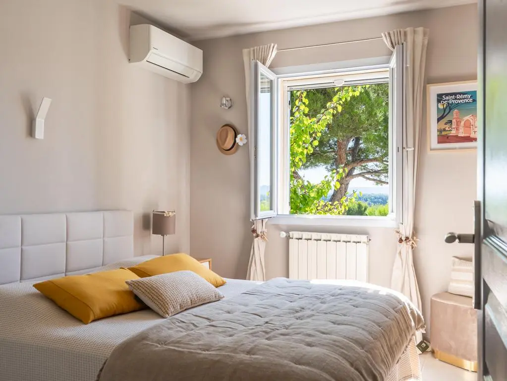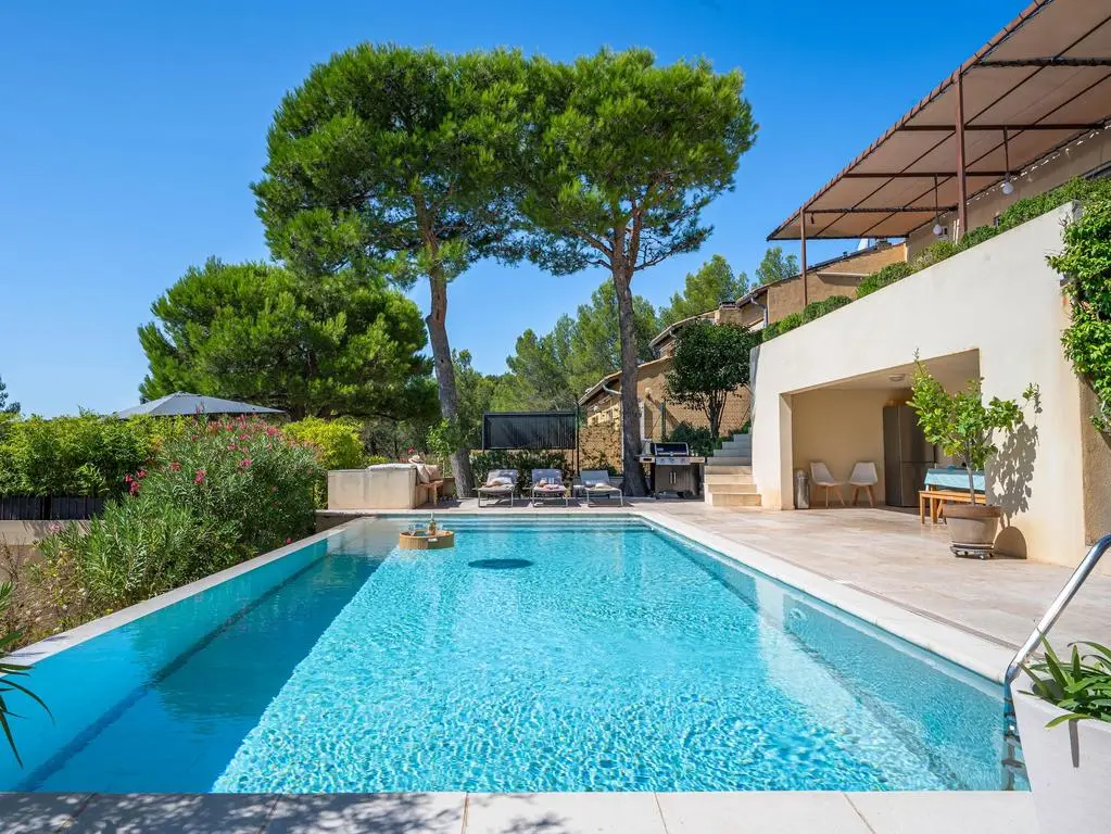 Deze moderne en geklimatiseerde villa is rustig residentieel gelegen op de rand van het gezellige dorpje Noves, op een kwartiertje rijden van Saint-Rémy-de-Provence en de Alpilles.