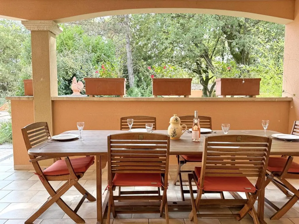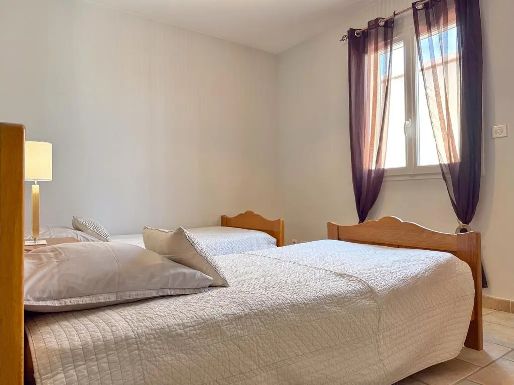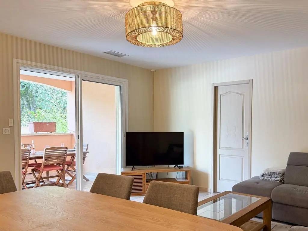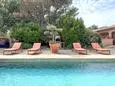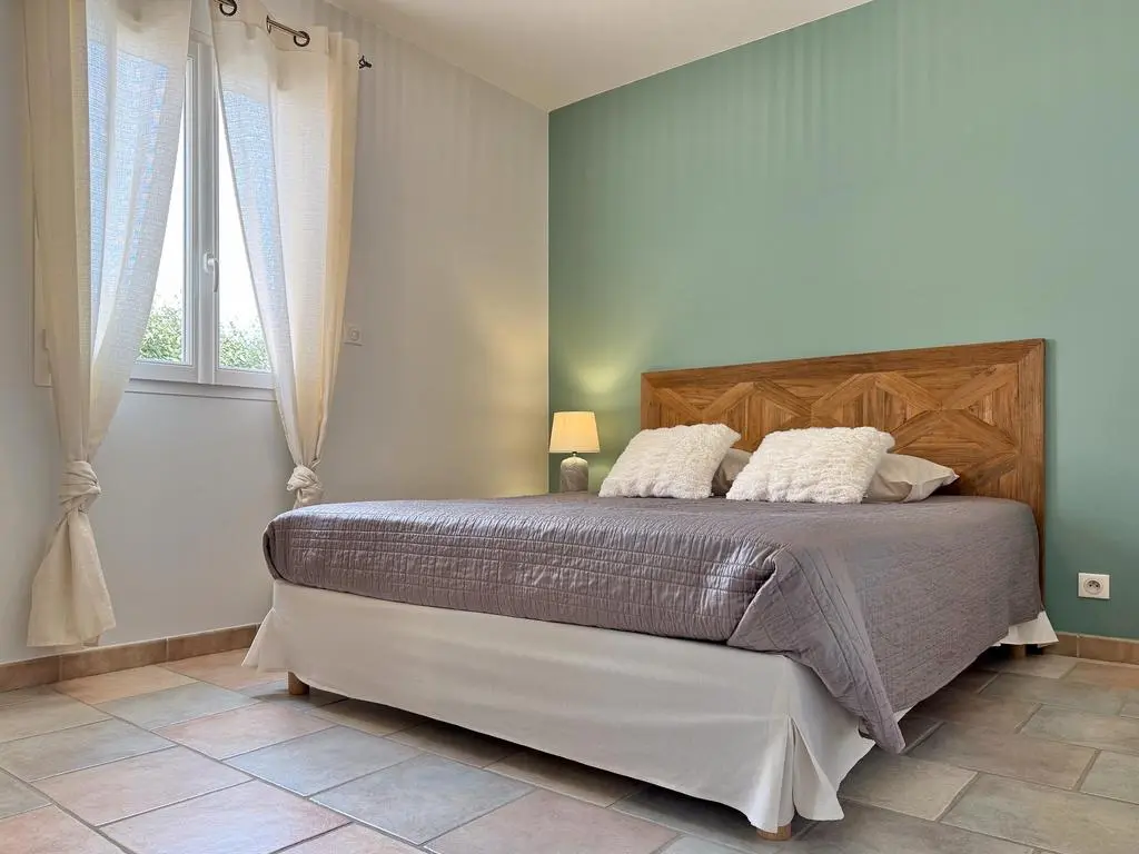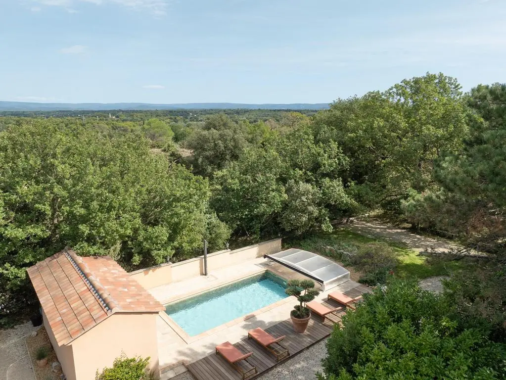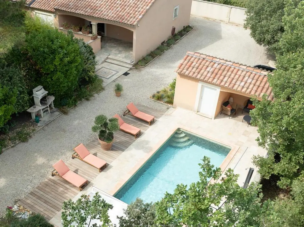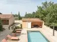 **NIEUW IN ONS AANBOD** Dit gelijkvloerse vakantiehuis ligt rustig op een kleine heuvel omgeven door groen en vlakbij het dorp. Via de parking van de supermarkt beneden rijd je 200 m een verharde oprit naar boven en kom je meteen in de vakantiestemming. Vanuit de tuin heb je zicht op zowel de Mont Ventoux als op Les Dentelles de Montmirail.
