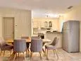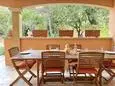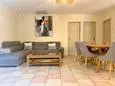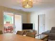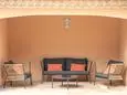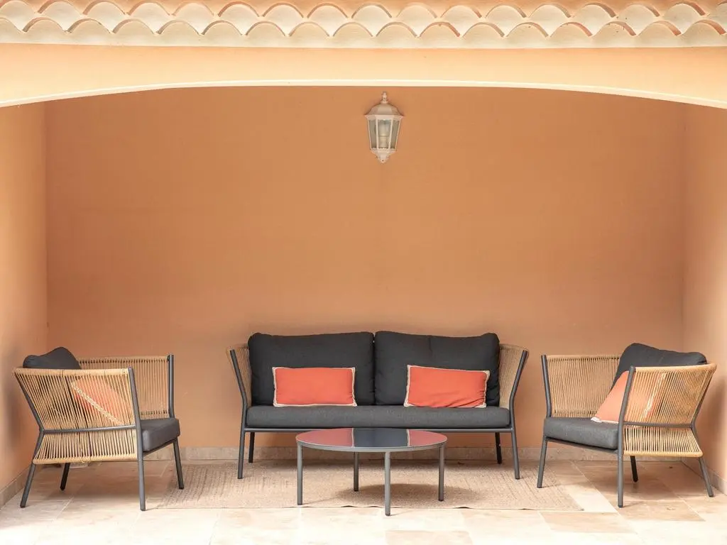 Terras en overdekt terras met tuinmeubels, barbecue op houtskool en 4 ligzetels. Living met zithoek, airco en TV. Ingerichte keuken met enkele spoelbak, grote koelkast met vriesvak, kookpitten op gas, dampkap, microgolfoven, vaatwasmachine, koffiezet en espressomachine (met gemalen koffie). Aparte berging met bijkomende koelkast met vriesvak, wasmachine, droogkast, droogrek, stofzuiger, strijkplank en strijkijzer.