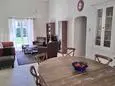 Terras en overdekt terras met tuinmeubels, elektrische barbecue, 5 ligzetels en 2 parasols. Living met zithoek, airco, flatscreen TV, Google Chromecast, DVD en Bluetooth-box. Mezzanine met zithoek en terras. Ingerichte keuken met enkele spoelbak, koelkast met vriesvak, elektrische kookplaten, dampkap, oven, microgolfoven, vaatwasmachine, Senseo en koffiezet "French Press". Aparte berging met wasmachine, droogkast, droogrek en stofzuiger.