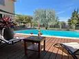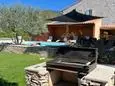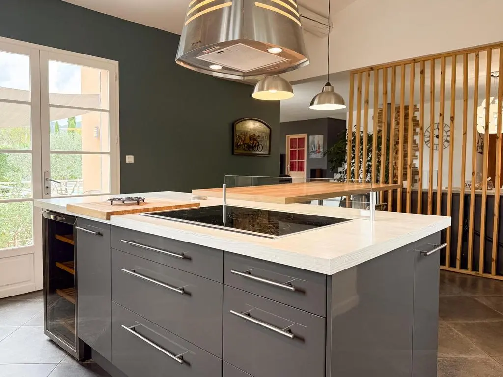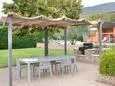 Terras en overdekt terras met tuinmeubels, barbecue op houtskool, 5 ligzetels, pergola en schaduwzeil. Living met zithoek, airco, smart TV, Bluetooth-box en houtkachel. Ingerichte keuken met dubbele spoelbak, grote koelkast met vriesvak, inductie kookplaten, dampkap, oven, microgolfoven, vaatwasmachine en koffiemachine. Aparte berging met wasmachine, droogkast, droogrek, stofzuiger, strijkplank en strijkijzer.