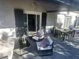 Terras en overdekt terras met tuinmeubels, elektrische plancha, 4 ligzetels, hangmat en 5 luifels. Living met zithoek, airco, TV, muggenramen en houtkachel. Ingerichte keuken met enkele spoelbak, Amerikaanse koelkast met diepvries, kookpitten op gas, dampkap, oven, microgolfoven, vaatwasmachine en Senseo. Aparte berging met wasmachine, droogrek, stofzuiger, strijkplank en strijkijzer.