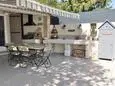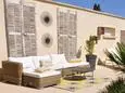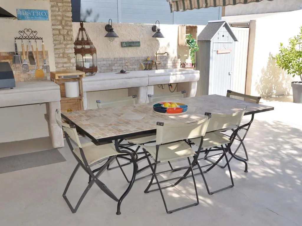 Terras en overdekt terras met tuinmeubels, plancha op gas, 8 ligzetels en een hangmat. Living met zithoek. Ingerichte keuken met enkele spoelbak, Amerikaanse koelkast met diepvries, kookpitten op gas, dampkap, oven, microgolfoven, vaatwasmachine, Nespresso en mixer. Aparte berging met wasmachine, stofzuiger, strijkplank en strijkijzer.