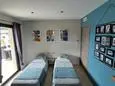Terras en overdekt terras met tuinmeubels, plancha, 6 ligzetels, hangmat en een parasol. Living met zithoek, airco, TV en houtkachel. Ingerichte keuken met enkele spoelbak, grote koelkast, aparte diepvries, bijkomende koelkast, gasfornuis, dampkap, oven, microgolfoven, vaatwasmachine, Senseo en koffiezet. Aparte berging met wasmachine, droogkast, stofzuiger, strijkplank en strijkijzer.