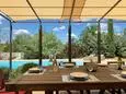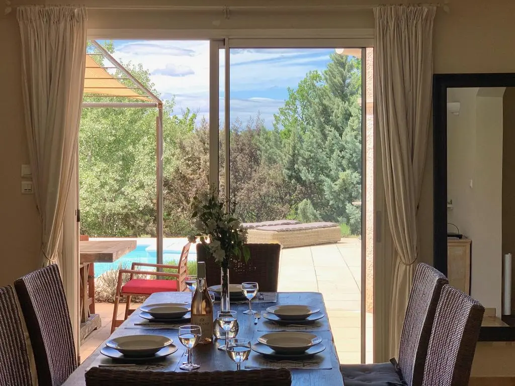 We hadden direct een wauw-gevoel bij het binnenkomen van deze woning: ruime kamers, alles zeer net, gezellige leefruimte,... Ook buiten een zeer leuk overdekt terras met cosy zithoek om 's avonds gezellig in te vertoeven (en als je overdag wat schaduw wenst) en aan de voorkant van het huis een petanquebaan met apérohoekje. Het zwembad is geweldig! Ideaal ook met kleinere kinderen vanwege de Romeinse trap en het minder diepe gedeelte in het zwembad. Het huis heeft voldoende privacy en ligt mooi tussen de talrijke bomen. De ligging is ideaal om de omgeving te verkennen: Vaison-la-Romaine, Buis-les-Baronnies, Nyons, Gorges de Toulourenc, de talrijke wijnboeren en uiteraard de Mont Ventoux die altijd wel ergens uitblinkt. Ook het dorpje Mollans sur Ouvèze is gezellig om te vertoeven. Tevens een super sympathieke eigenaar wat alles des te aangenamer maakt!