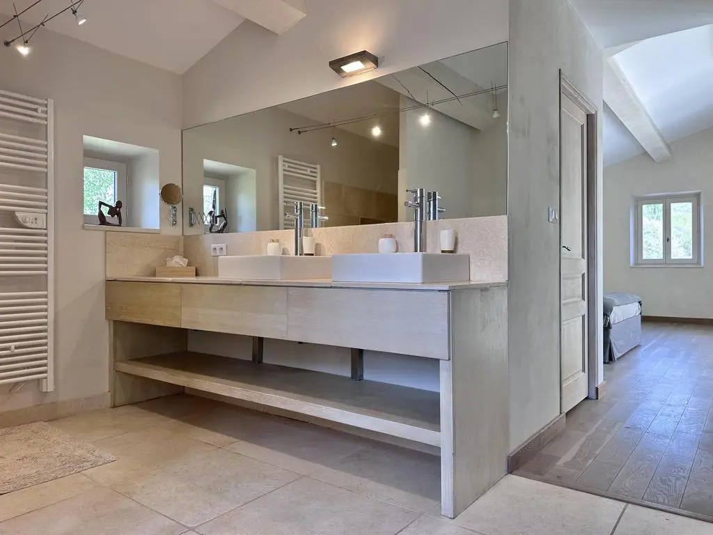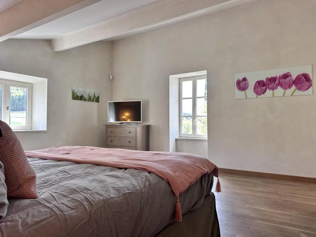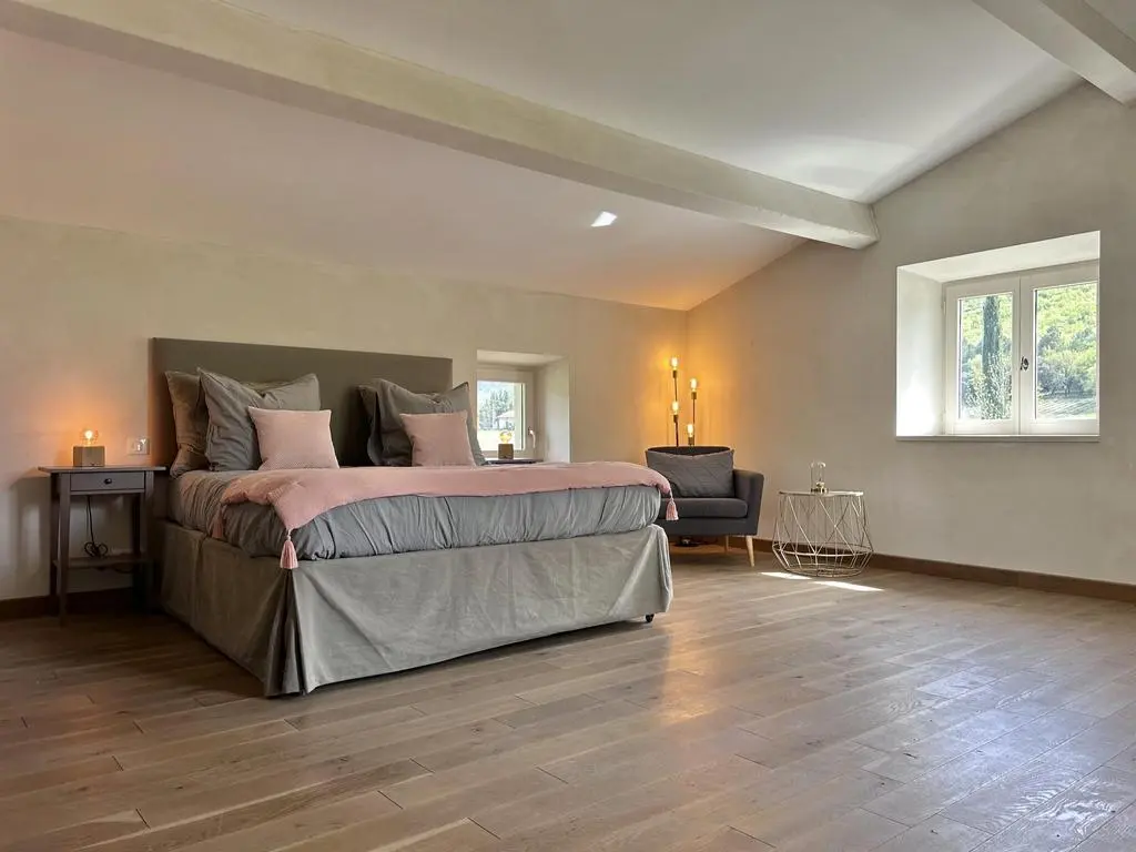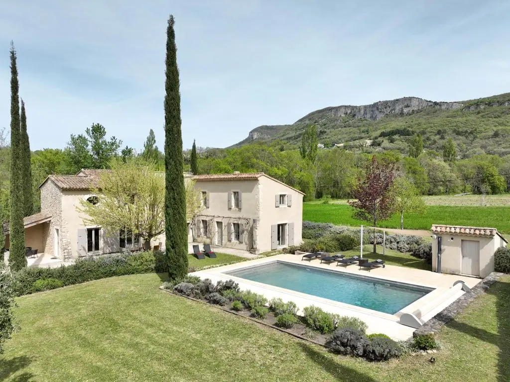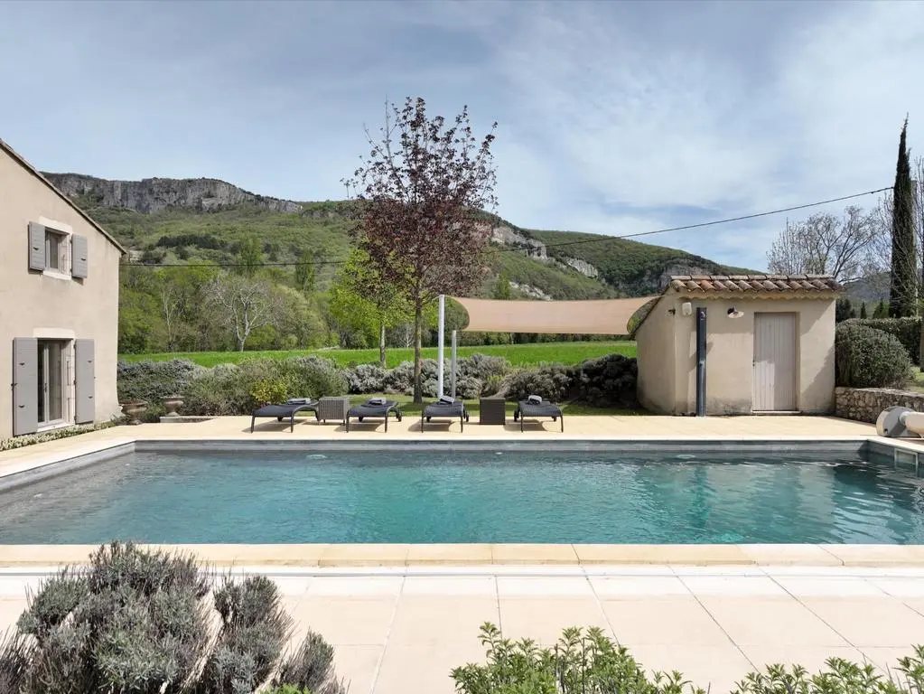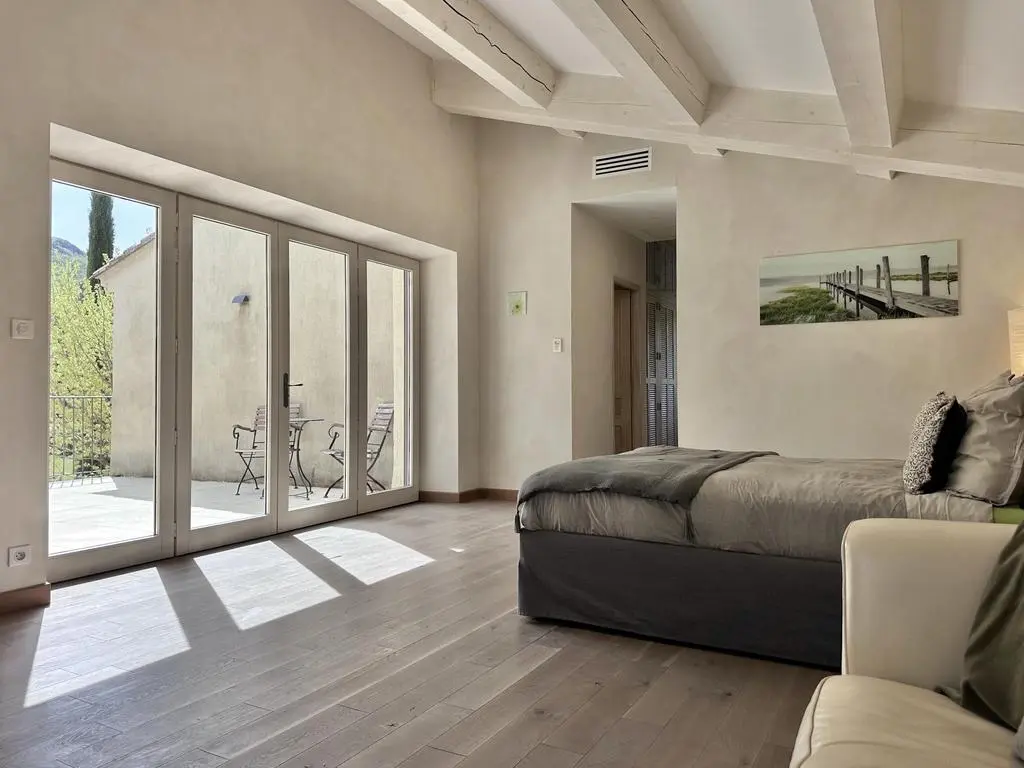 Deze prachtig gerestaureerde en modern ingerichte boerderij, gelegen in het rustige platteland van de Drôme Provençale nabij het charmante dorpje Souspierre, biedt een adembenemend uitzicht en volledige privacy bij het grote privézwembad. De ruime slaapkamers met airconditioning hebben elk een eigen badkamer.