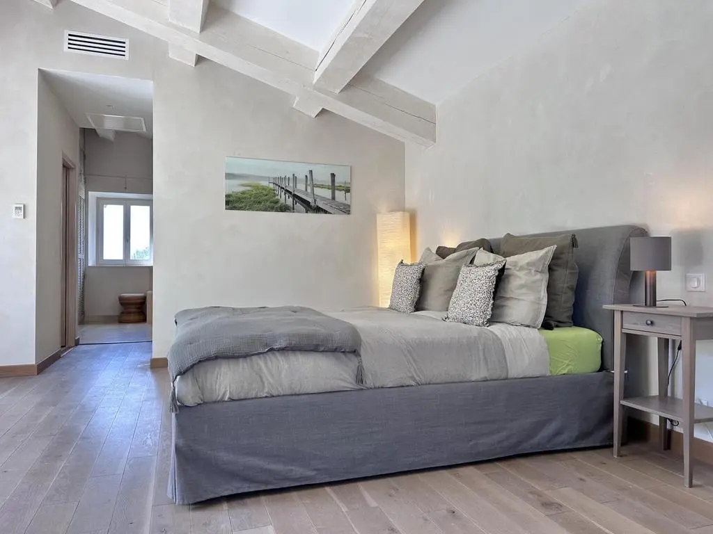 - slpk 2 met bed 160 cm, TV, airco, ensuite badkamer met bad, inloopdouche, 2 lavabo's en aparte WC (verdiep)